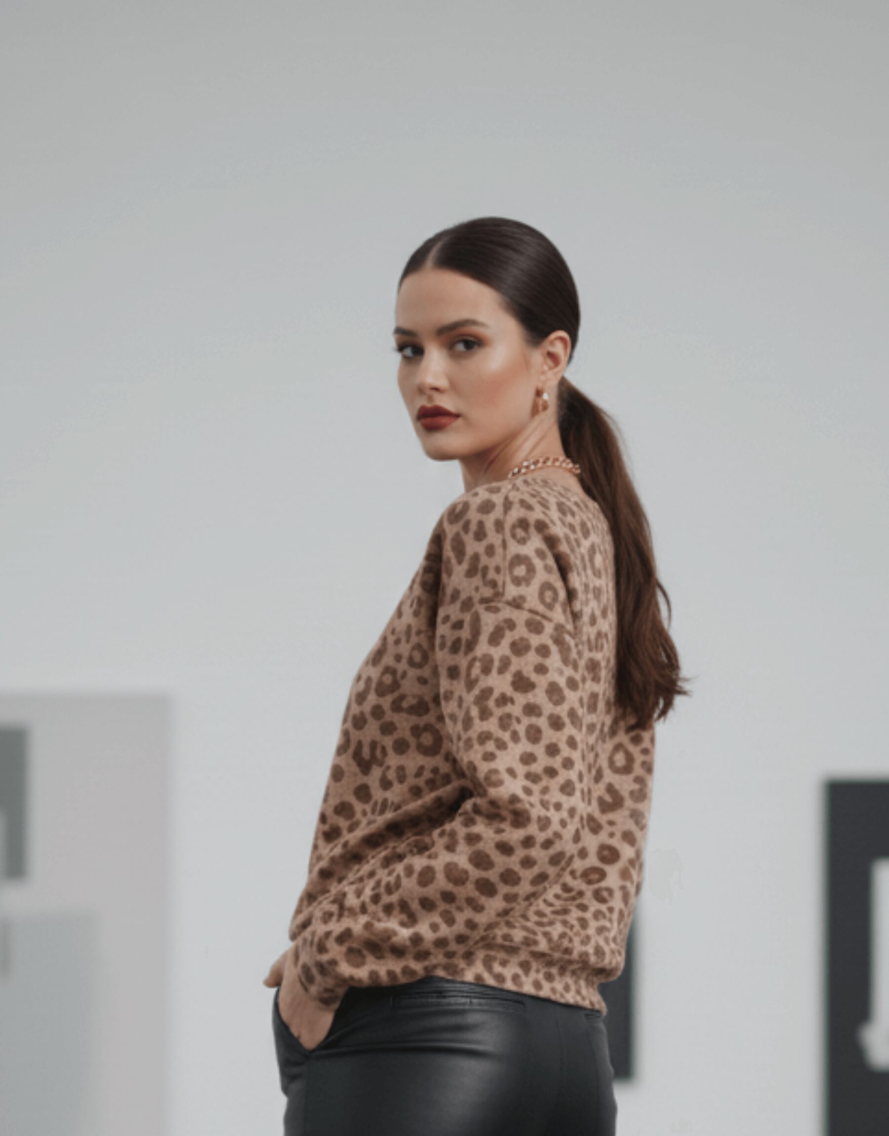 The “Velvet Roar” Signature Leopard Knit Sweatshirt