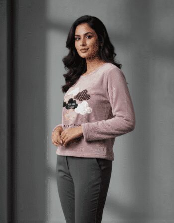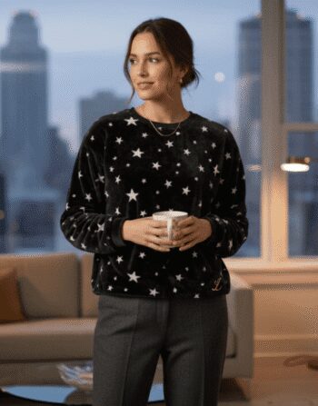 Women’s Luxury Pink Velvet Star Sweatshirt | Premium Loungewear