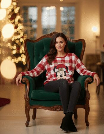 Luxe Velvet Holiday Sweatshirt – Premium Festive Plaid Top