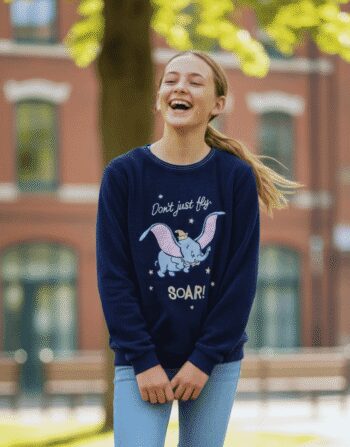 Girls’ Disney Dumbo Fleece Embroidered Navy Pullover – Ages 12-16