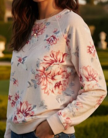 Premium Floral Print Velvet Sweatshirt – Luxury Women’s Long Sleeve Pullover
