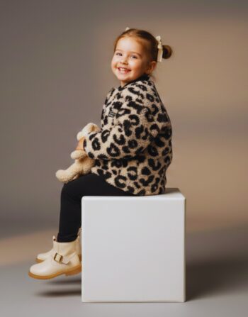 Girls Leopard Print Fleece Bomber Jacket | Luxury Outerwear