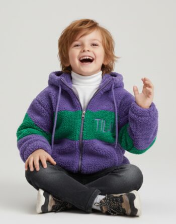 Boys’ Luxury Color-Block Sherpa Jacket | Purple/Green