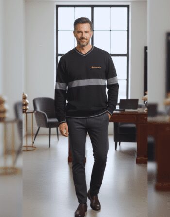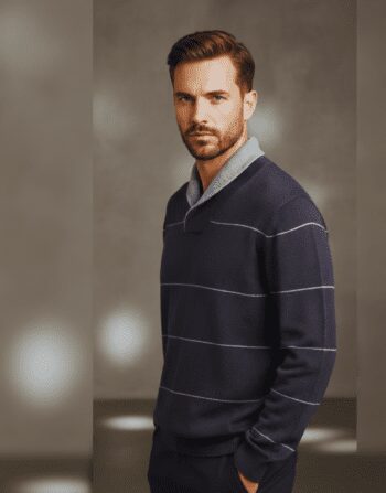 Premium Men’s Striped Long-Sleeve Knit – Luxury V-Neck Polo