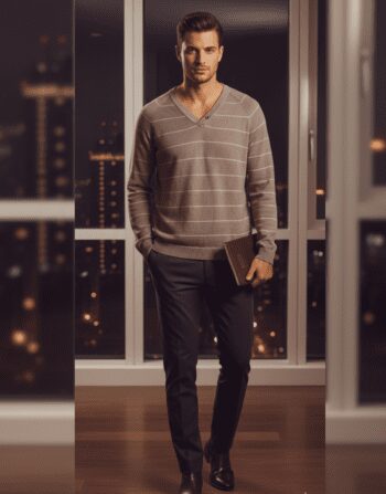 Luxury Men’s V-Neck Sweater | Striped Cashmere-Blend Knit