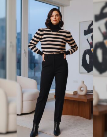 Women’s Luxury Striped Puff-Sleeve Sweater