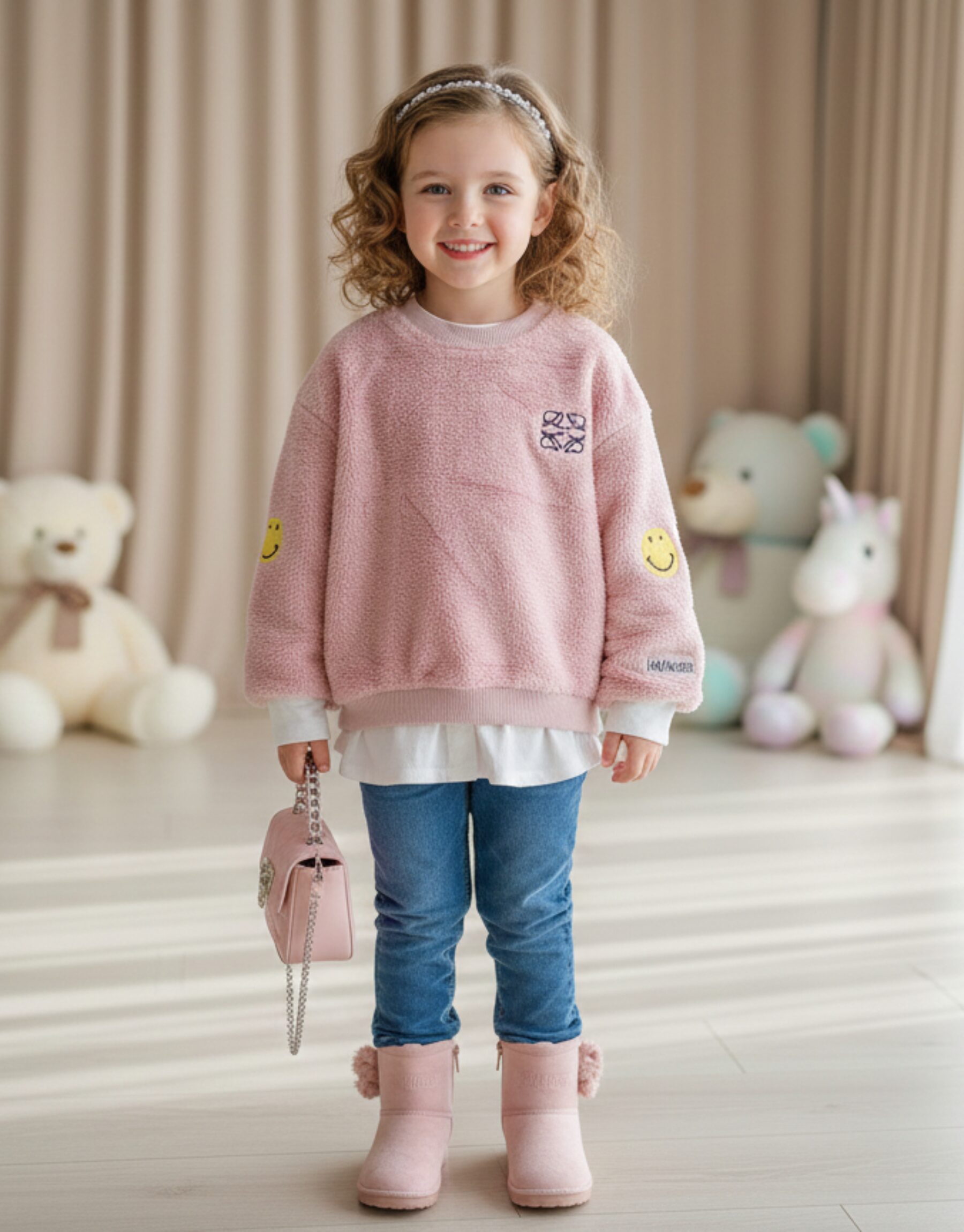 Luxury Kids Pink Teddy Fleece Jacket | Oversized Cozy Winter Coat for Girls