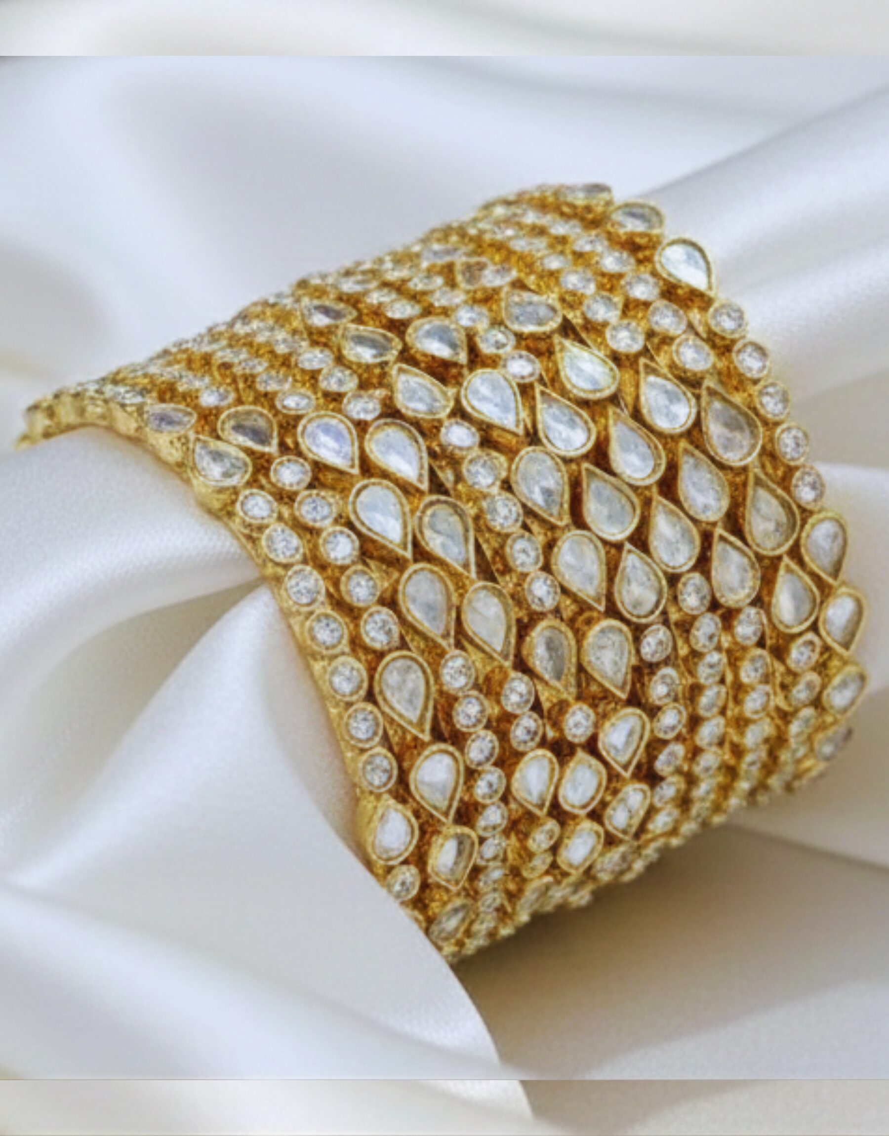Shop for Furshi Kundan Bangle with premium gold plating. Elegant kundan design, perfect for weddings, festive occasions & bridal looks.