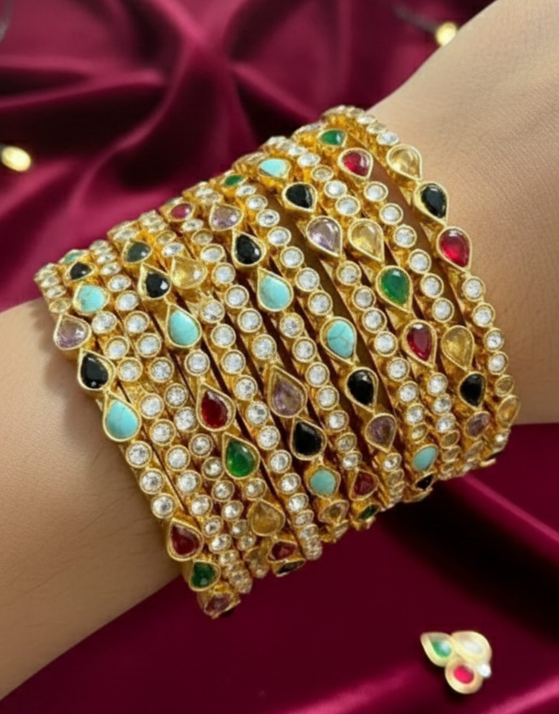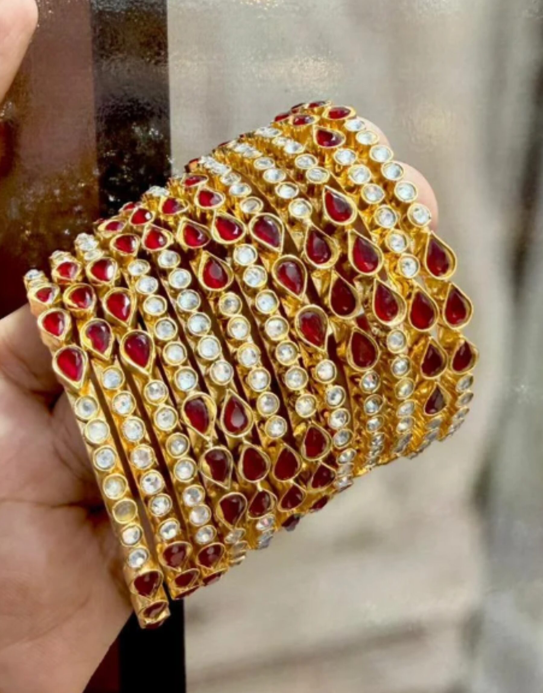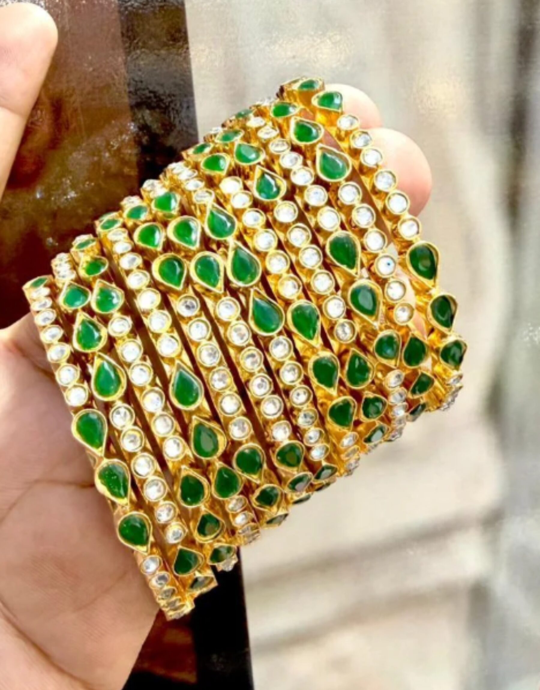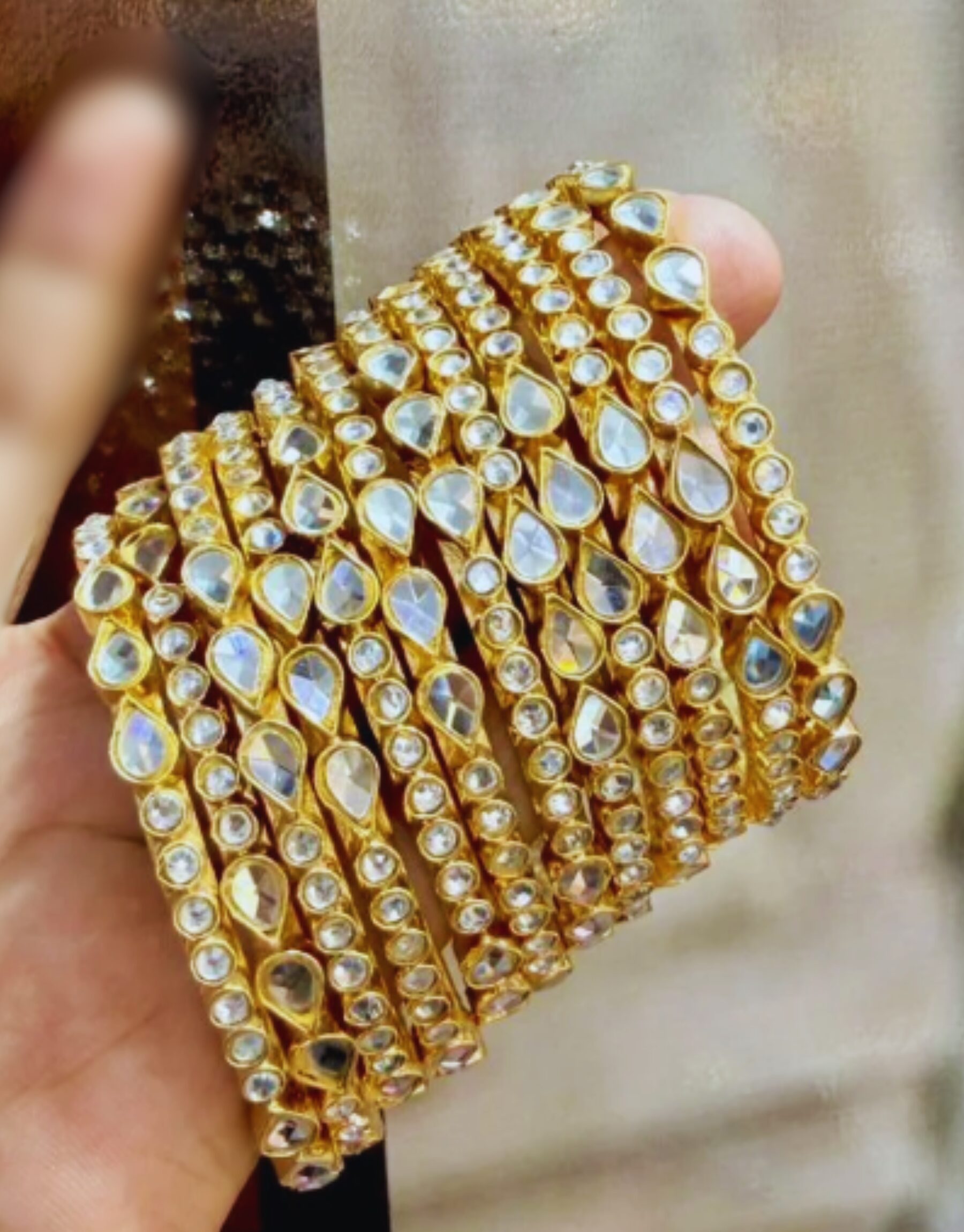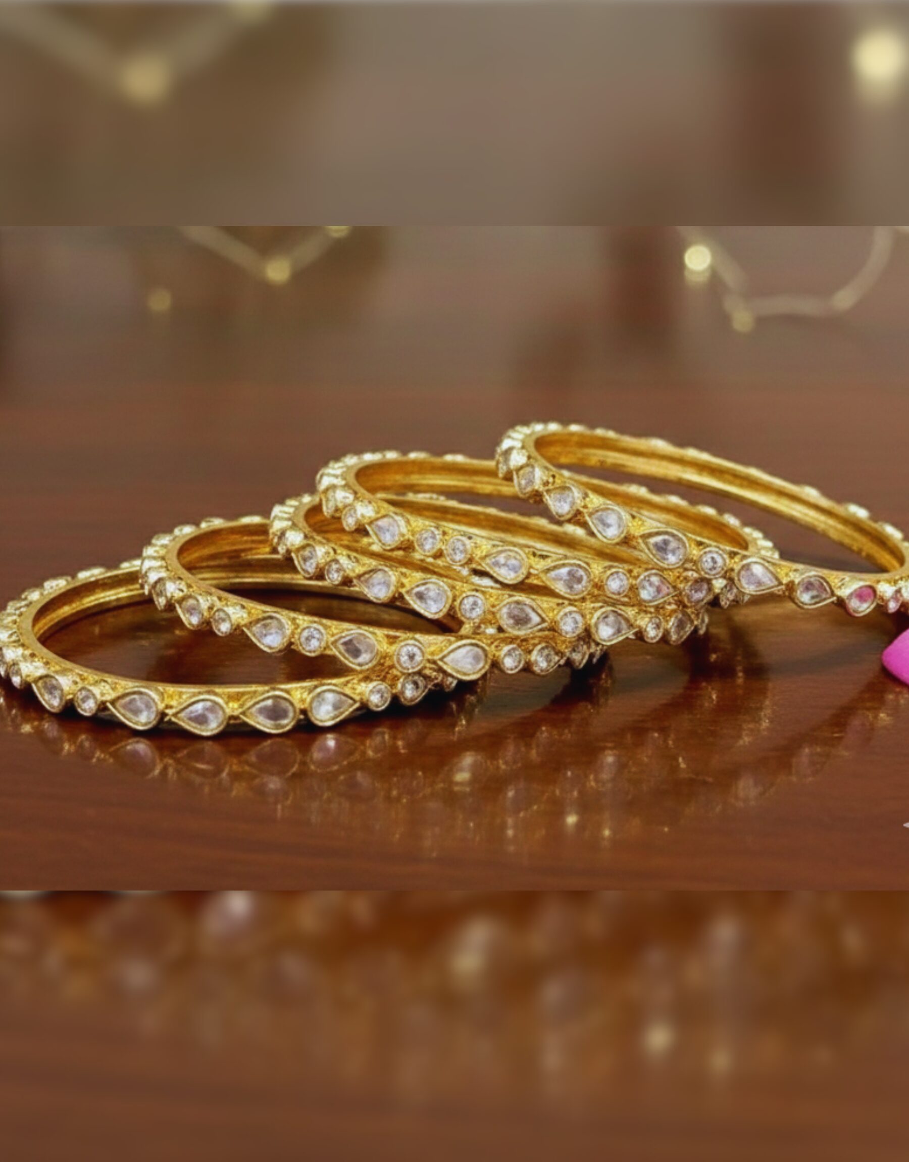 4-piece Furshi Kundan Bangle Set in gold finish—perfect for weddings, gifting, and cultural wear.