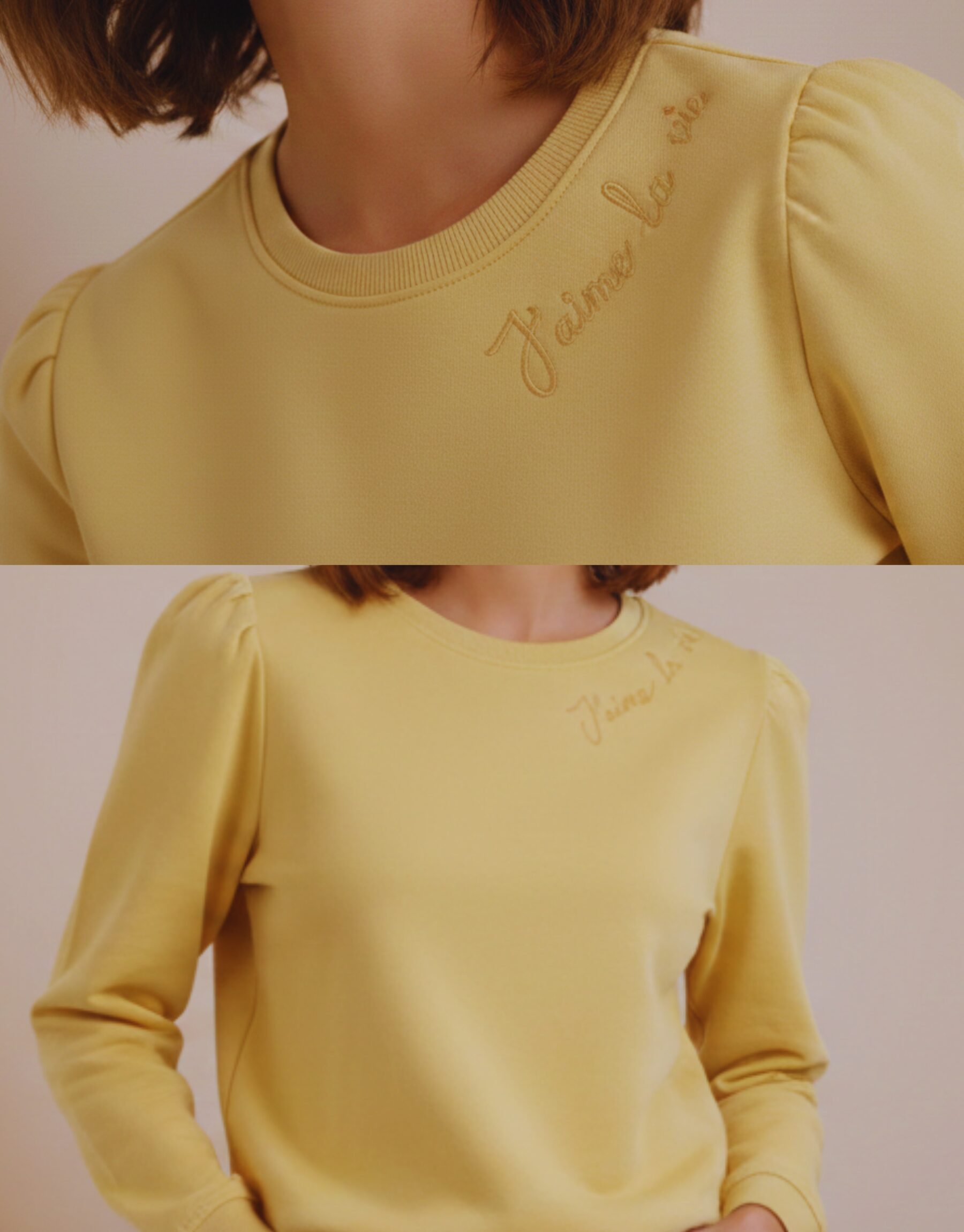 Luxury Mustard Puff-Sleeve Sweatshirt | Premium Cotton Knit