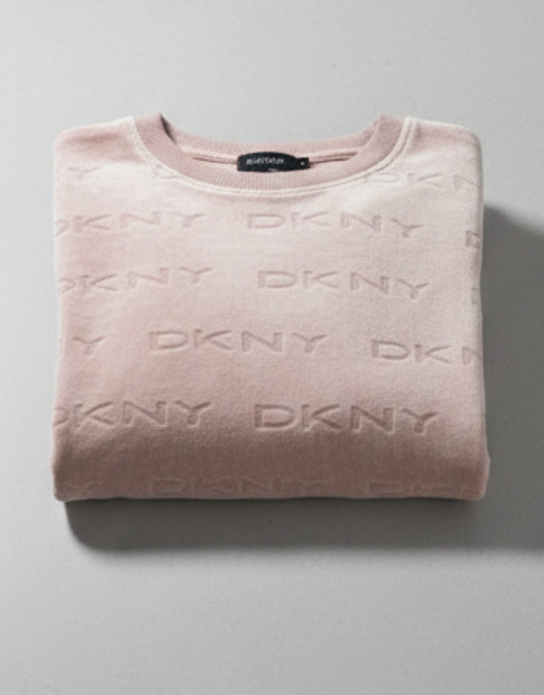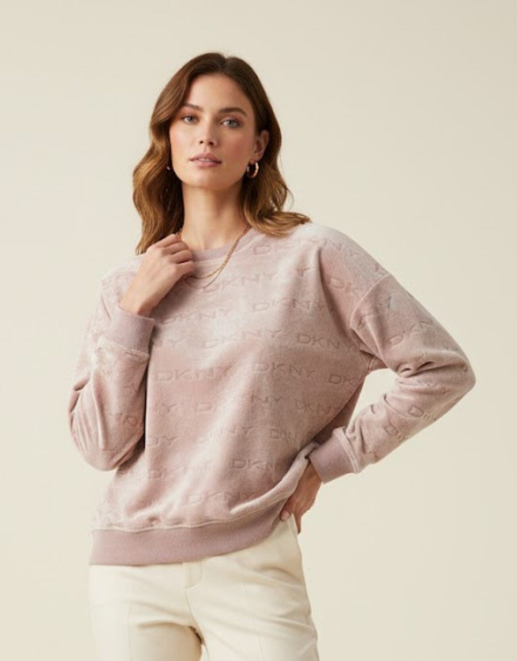 DKNY Embossed Monogram Velvet Pullover – Premium Women’s Designer Rosewood Blush Top