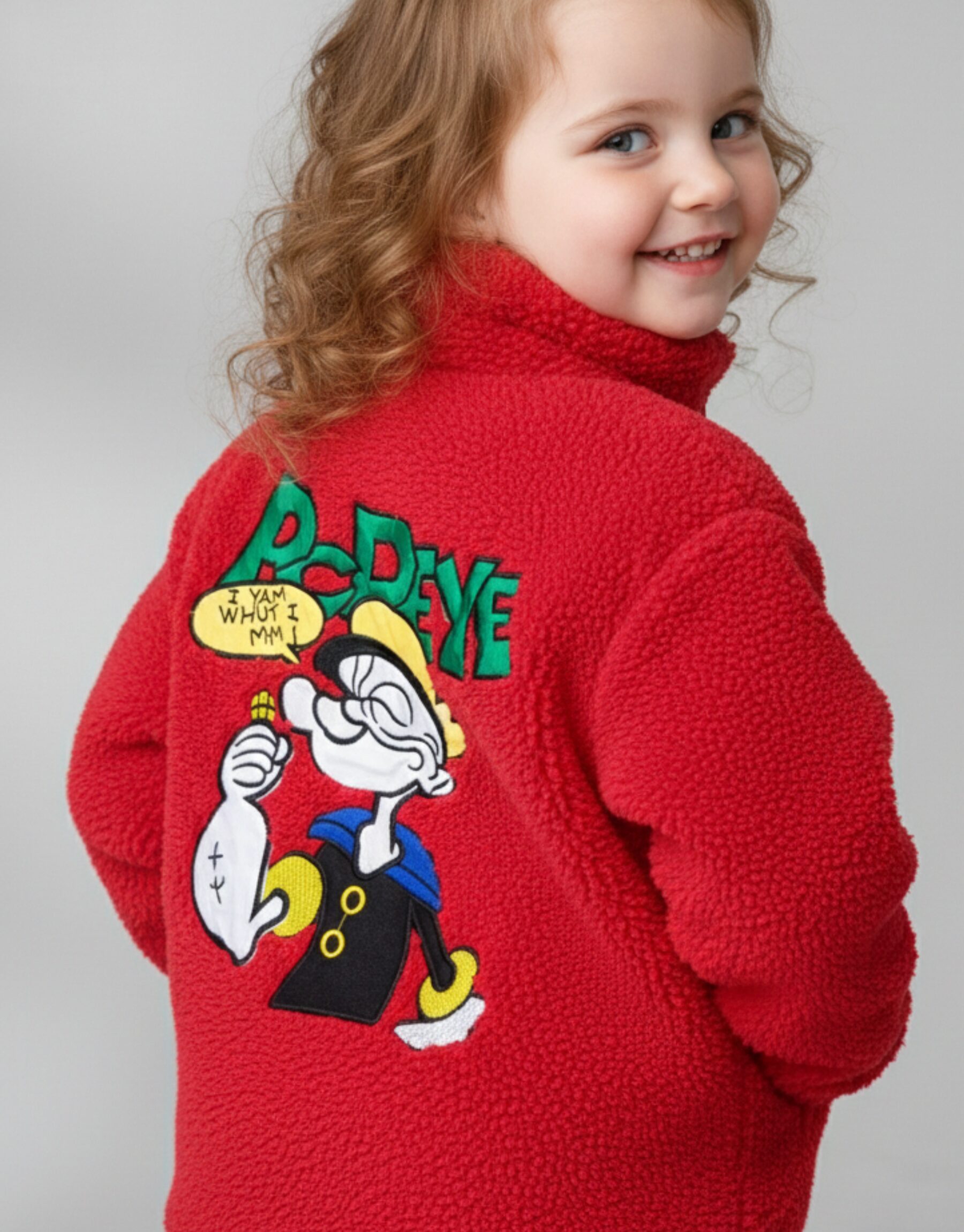 Toddler Girls Luxury Red Fleece Jacket – Popeye Embroidered Back Design