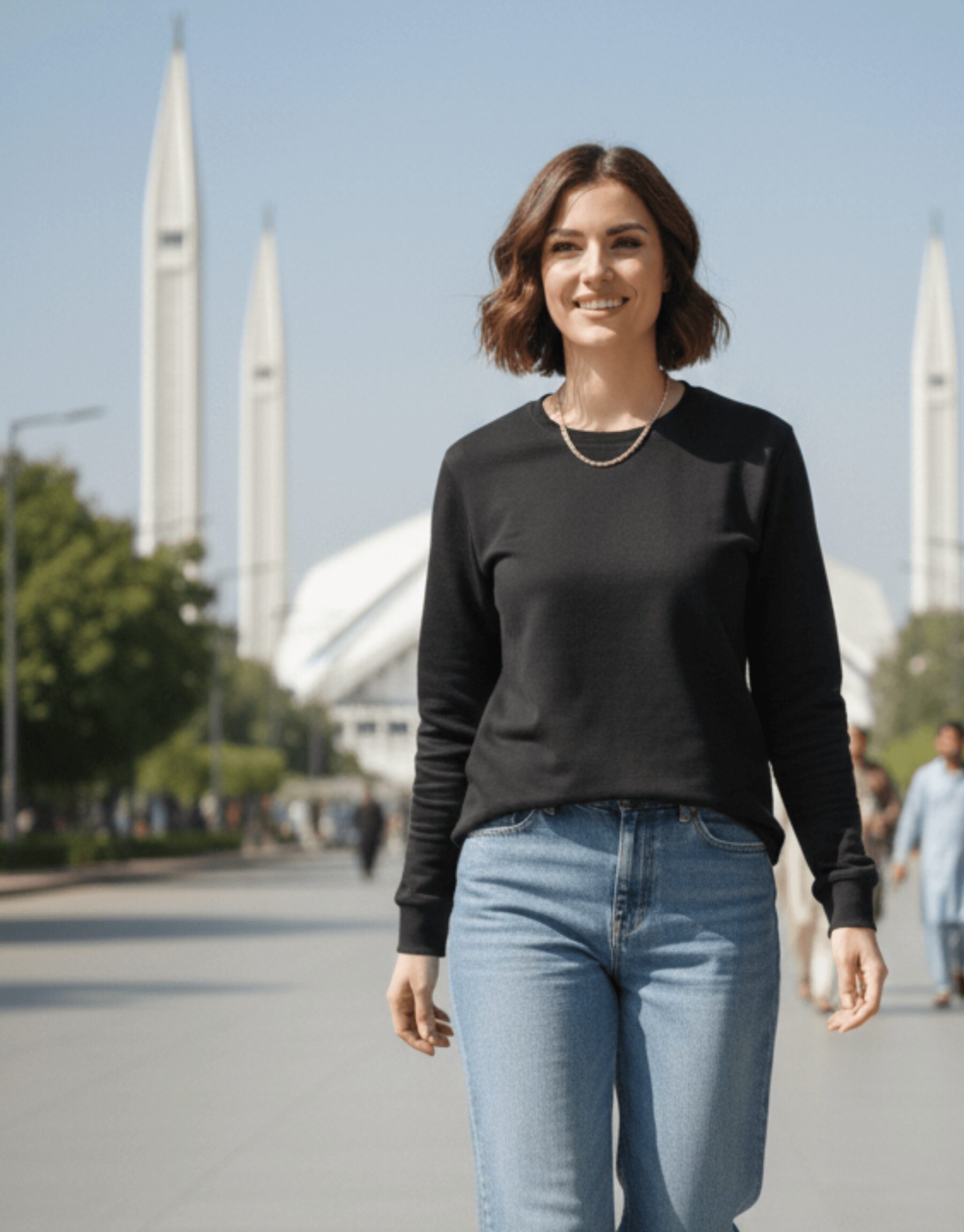 Discover the perfect Women’s Black Sweatshirt for a sharp, effortless look. Designed with a neat, ironed finish and a premium feel, this essential long-sleeve top is your go-to for coffee dates and city walks. Shop the ultimate wardrobe staple today!