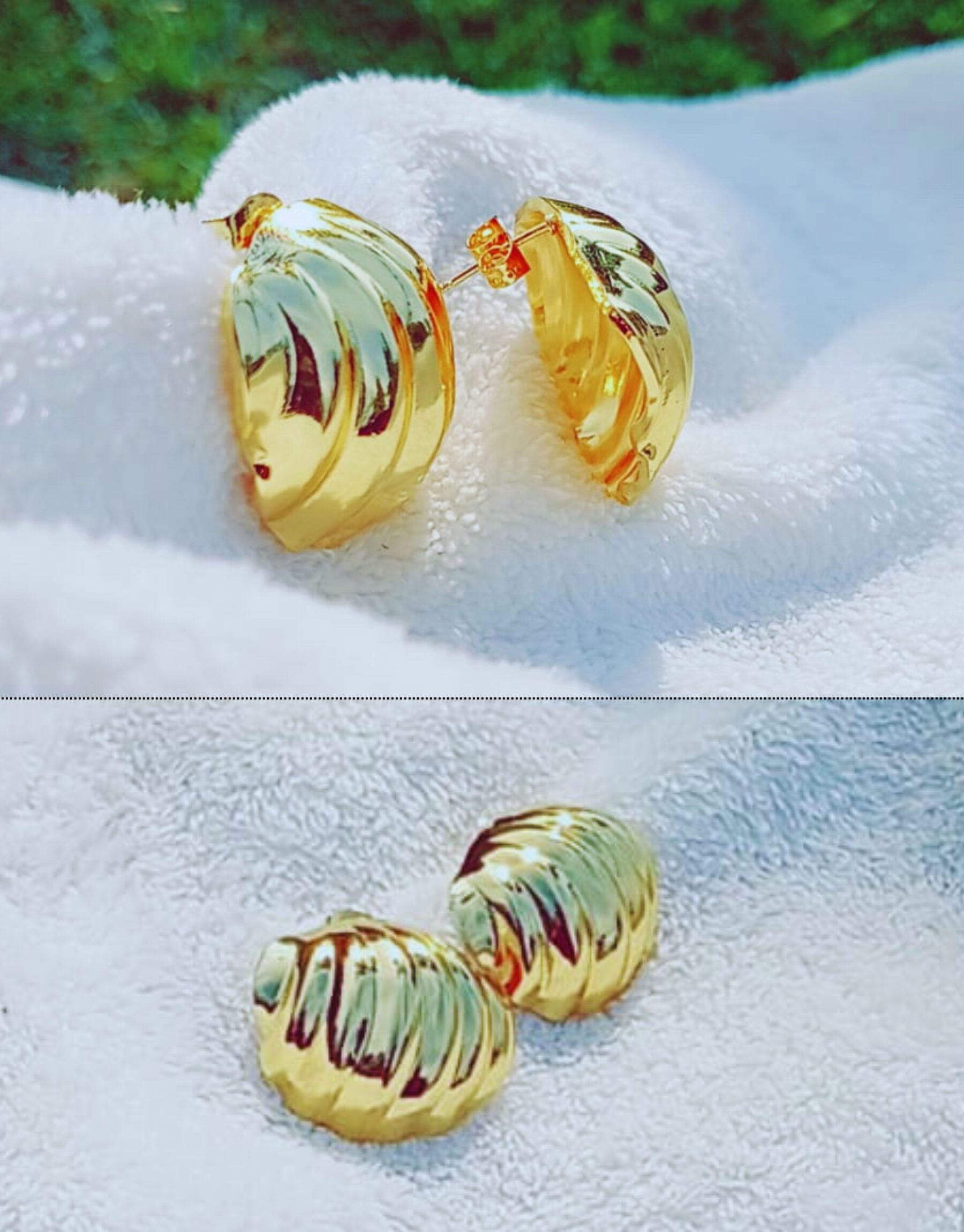 Elevate your “everyday luxury” with these Waterproof Gold Ribbed Shell Earrings. Crafted from high-quality Stainless Steel, these tarnish-proof studs offer a bold, vintage-inspired look that stays gold whether you’re at the beach or in the gym. The perfect blend of 90s glam and modern durability.