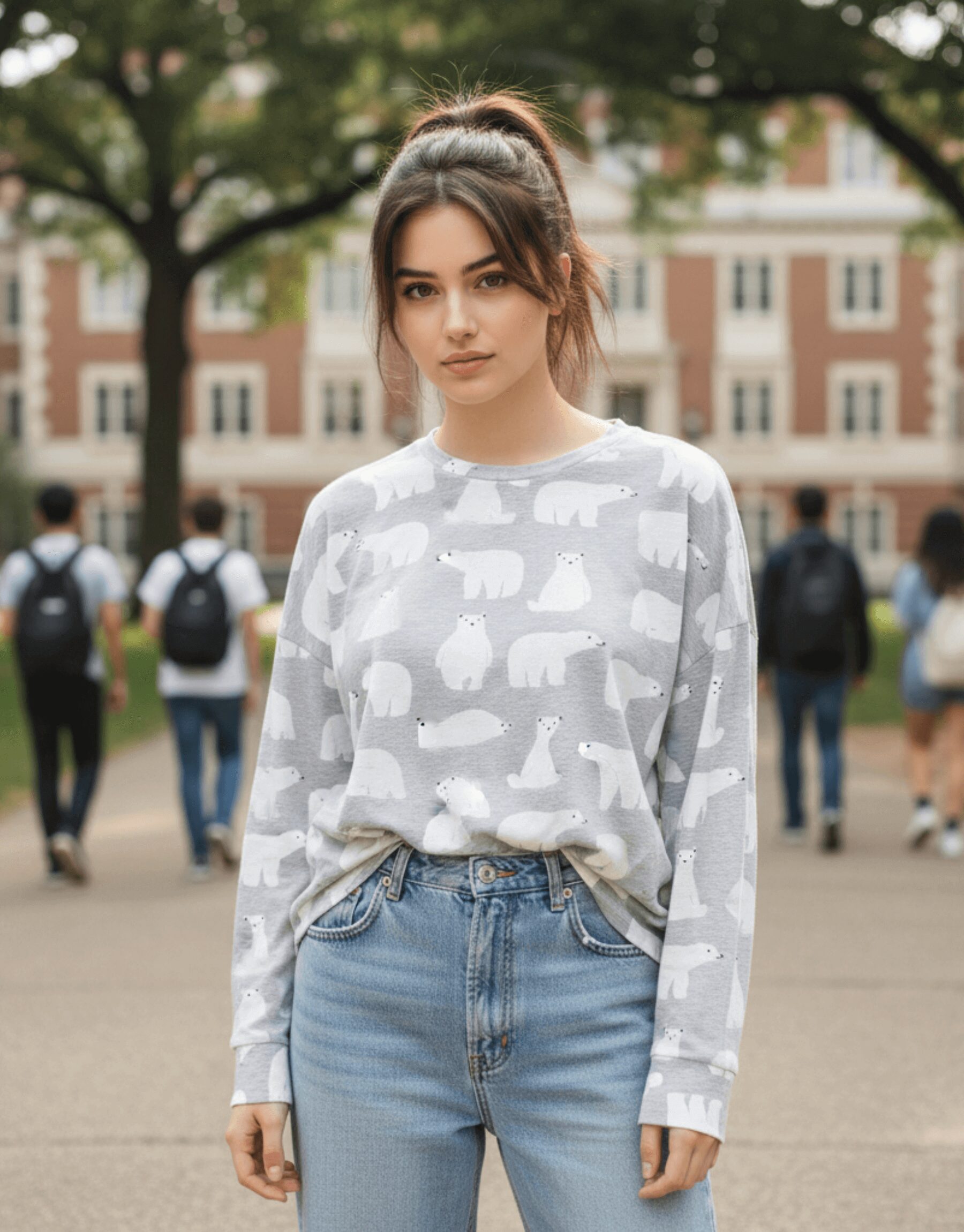 The Ultimate Campus Essential: Women’s Polar Bear Print Pullover