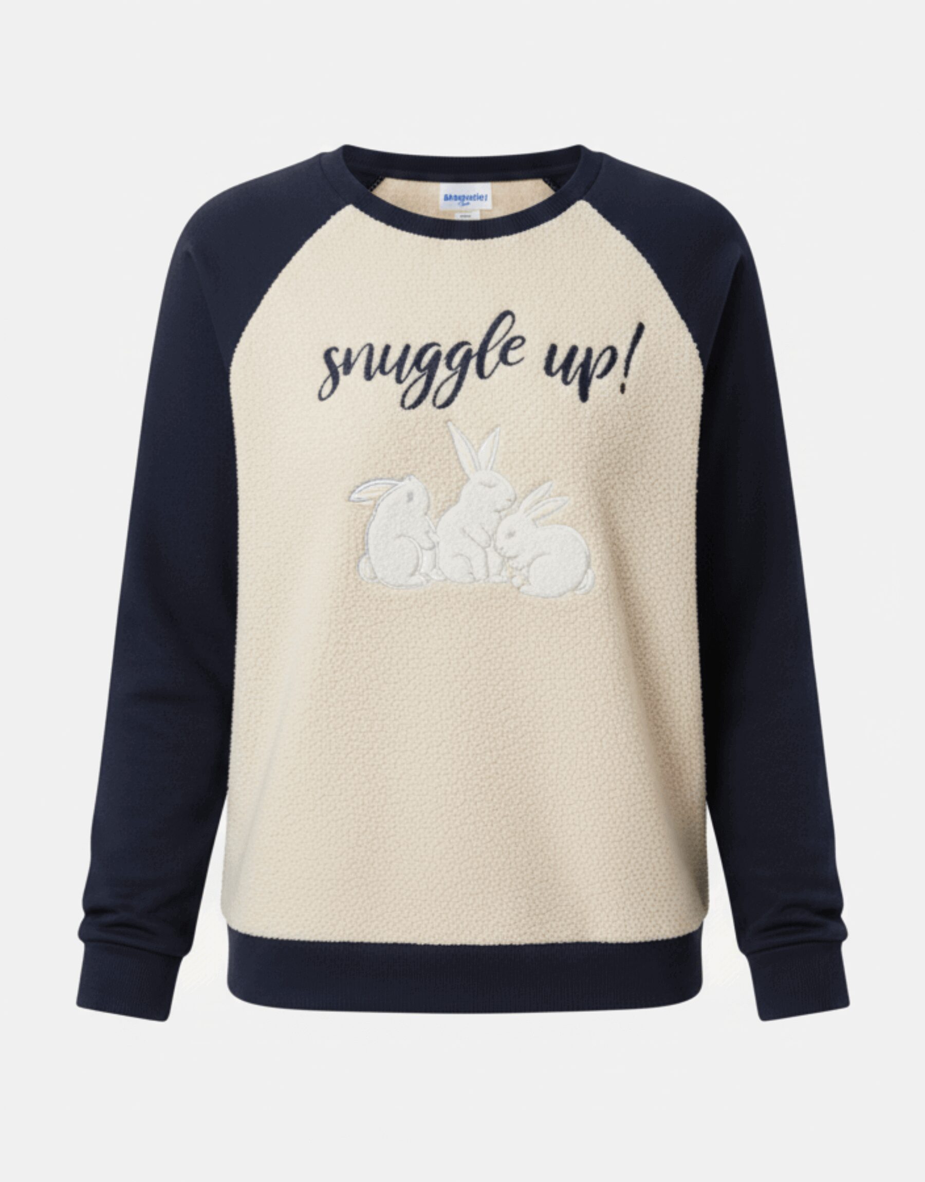 Women’s “Snuggle Up” Rabbit Graphic Sweatshirt – Cozy Fleece Pullover for Winter