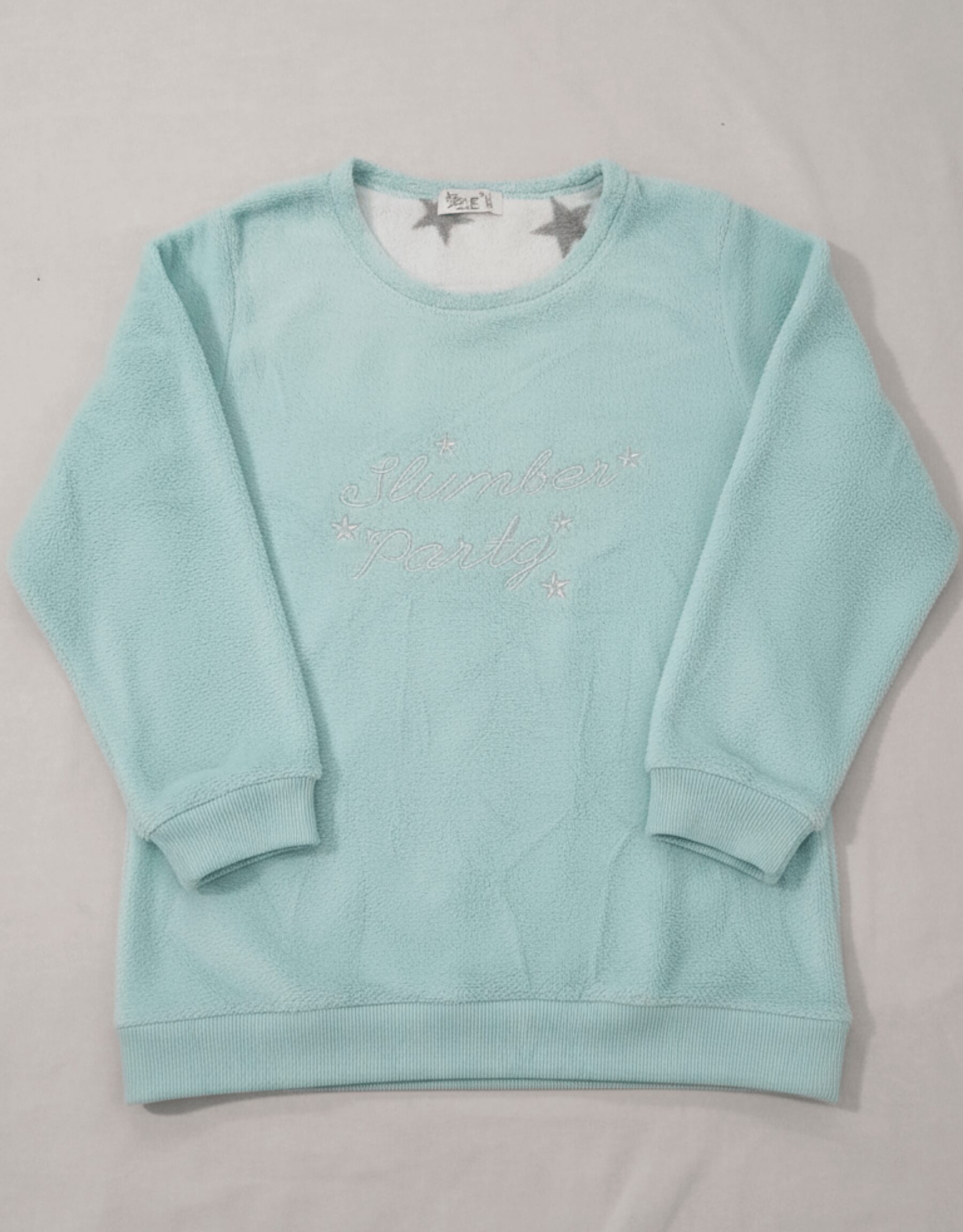Soft Fleece Loungewear – Mint Green Slumber Party Embroidered Sweatshirt